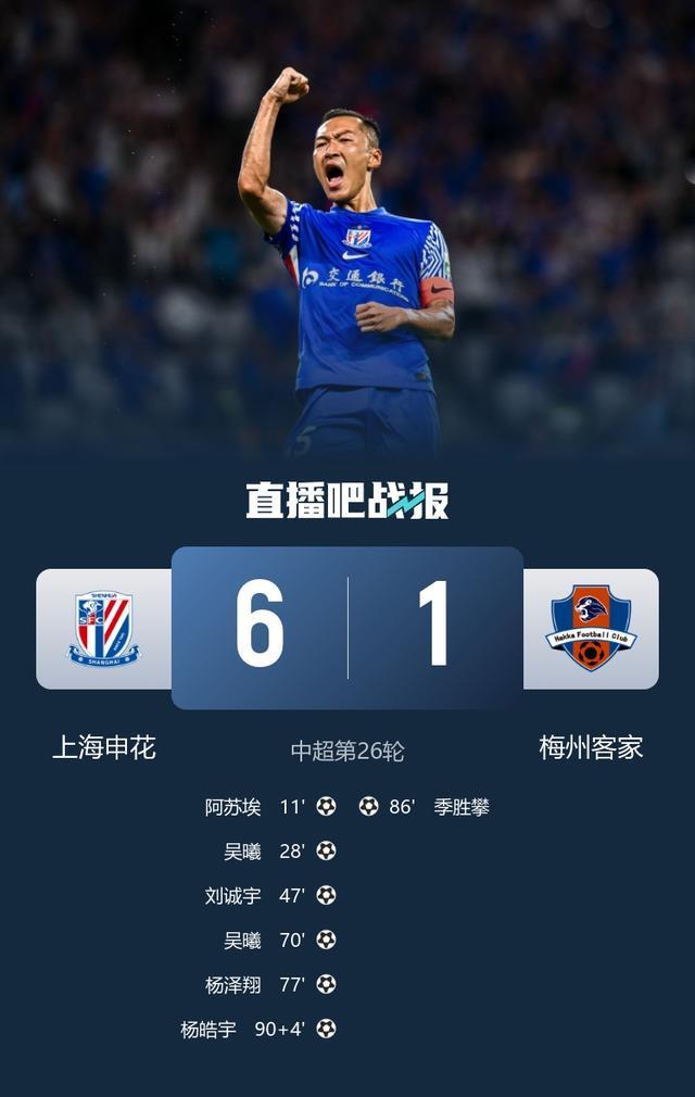 9月26日的现场直播。在中国超级联赛的26日,上海神沙在家里对阵梅伊兹·哈卡(Meizhou Hakka)。在上半场,Asuai连续两个进球,Omarsson错过了机会,Jocic将球带到了比赛中,Wu XI打进了进球。改变了双方之后,刘成尤赢得了另一场比赛,两次吴XI得分,杨Zexiang加入了蛋糕,吉·尚潘赢得了进球,杨·海约(Yang Haoyu)赢得了蛋糕,而Yu Hanchao得分两次。最终,申豪(Shenhua)6-1 Meizhou Hakka。就姿态而言,申豪首先以54分领先前两名,而梅伊州(Meizhou)排名17分。 [游戏的基本事件]在11分钟内,Shenhua从后场进行了很长的传球,打破了Meizhou Defense。 Asuai推动了禁区的左侧,并以小角度射击被防守者阻止。 Asuai后来抓住球,再次击球。 Shenhua在第28分钟领先1-0↓,Shenhua的正确进度被切断了。双方为球而战and转换。最后,Manafa抓住了球,并将其传给了点球。 Wu Xi紧随其后,将其直接射到网上。 Shenhua在第47分钟以2-0领先,Shenhua从右侧进攻,Asuai运球,进行了连续的假手术,以摆脱它并将其发送到十字架。 Shenhua在罚球区得分,在第70分钟以3-0领先,Meizhou的反击被Zhu Chenjie封锁,后者发出了独特的通行证。 Wu Xi got the ball and shot from the left side of the p areaAusa to score in the far corner, led by Shenhua to the top of the arch, Yu Hanchao, who appeared only on the bench, kept ball and directly rubbed in the penalty area, Yang Zexiang followed and shot in the net, Shenhu LED 5-specifically followed and shot in the net, Shenhu LED 5-0 number and shot in the net, Shenhu Led 5-0。在第86分钟,梅村的长传中摧毁了后场防守线,奥马森转过身,击落了低罚球区后卫是一个后续的射门网,首次抬起旗帜,首先指出越位。 VAR中断后,他确定球不在外面。在第90分钟和第4分钟,该商标在5-1↓重写,Shenhua经过了很长的传球,并打破了防御线。 Yu Hanchao将球向左抓住,然后将球推到球以不小心的情况下传球。 Yang Haoyu Andeasy得分。 Shenhua在第5分钟领先6-1↓[比赛的焦点],Rodrigue被拉到了禁区的边缘。 - 介入并仍在第13分钟订购了固定的一件↓,梅伊岛迅速发送了一块固定的一件,奥马尔森没有被标记并直接从长途射击。在15分钟内,右侧的Shenhua的转角踢到了罚球区,领先球,Li Ke的头球没有接球。在17分钟内,梅济族中场球员挡住了球,并发出了反击并直线通过。奥马尔森的半场是DXue Qinghao及时攻击。在第26分钟,Meizhou Hakka的固定装置在点球场上踢球,Jocic带领球并在球门哨所外弹跳。在-82分钟内,Wang Haijian在第90分钟以上的拱门击中SA High↓的远射,Shenhua从右边的十字架进行了十字架,Yu Hanchao错过了进球前中间框架的机会。 ↓下半年停止时间7分钟。在比赛结束时,上海Shenhua 6-1 Meizhou Hakka。 [第一版,双方替换信息]