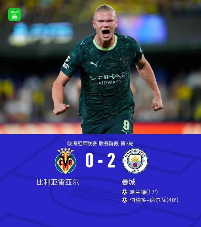 北京时间10月22日下午3点,欧冠联赛第三轮,曼城前往陶瓷球场挑战比利亚雷亚尔。裁判是格祖布尤克。上半场,刘易斯帮助哈兰德进球,萨维尼奥帮助海B头球破门。下半场,尼科因伤退场,奥卢瓦塞击中立柱。最终,曼城2-0战胜比利亚雷亚尔。主赛事第17分钟,刘易斯横传球门,哈兰德破门,曼城1-0!第40分钟,萨维尼奥妙传,主席B头球破门。曼城2-0!第1分钟,双方球员入场,战斗一触即发。曼城从一开始就抢断了球权。多库跟随并击中球门,但被扑出。第4分钟,哈兰德冲球头球攻门,皮球偏出立柱。第7分钟,比利亚雷亚尔完成反击,努涅斯完成关键抢断。第22分钟,B座射门被排除。犯规并收到黄牌。第29分钟,帕普盖伊射门,皮球稍稍偏出。第31分钟,哈兰德传球,多库门前横传被解围。第56分钟,尼科伤退,科瓦契奇替补上场。第64分钟,萨维尼奥小角度射门,皮球被挡出。第66分钟,鲁本·迪亚斯撞倒对方门将,被出示黄牌。第71分钟,曼城后场出现失误。爸爸盖伊的射门被扑出。第77分钟,尼古拉斯·佩佩背后抽射反扑。第80分钟,科瓦契奇长传,哈兰德头球攻门没收。第83分钟,哈兰德前场推射打门。小路易斯前来救援。第86分钟,哈兰德和萨维尼奥被换下。舍尔基和马尔穆什替补上场。第88分钟,奥卢瓦塞头球攻门角球,球击中门柱。球队阵容技术统计【咪咕独家观看英超】