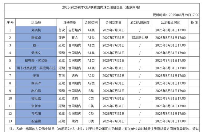 8月29日,北京时间,CBA的官方网站更新了国内球员注册信息,男子篮球队注册了13名球员,更新了此列表。在名单上,年轻球员的青年训练Liu Yihan与球队签订了A1合同,而前深圳篮球运动员Li Binzhuo也与Tongxi篮球队签订了A1合同。 Wei Yi,Yin Chunn,Hu Brown-Mamaiti,Abdusemaiti Maiti Abra继续与A1合同;在今年选秀大会上被选中的江安他签署了A2合同,胡金阳继续进行A2合同。主要内部人士Zhao Baiqing继续进行B级合同,而Wu Tingjia签署了C级合同的两年延期; Zhang Xinyu和Sun Mingyang继续与C类签订合同,Sizhu Mingzhen是目前与Tongxi篮球注册清单的唯一D类合同。值得一提Tongxi男子目前未包含在注册清单中,两人将来仍然有机会注册。