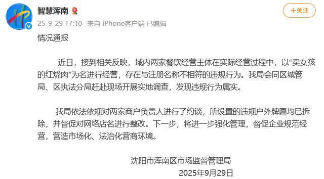 最近,借用餐厅的餐厅“出售女性炖猪肉”,借着骗子引起了争议。 9月29日,匈奴地区的市场监督和行政局,道恩市发布了一份情况:最近,相关报告收到了该地区的两种餐饮业务生物在实际的运营过程中以“出售女孩烙印的女孩”的名义运作,并且有违反注册名称的行为。我们的局与地区城市管理局和地区执法部门一起赶到现场进行现场调查,并发现违法行为是真实的。我们的局根据法律和法规采访了两个商人的领导人。已经删除并鼓励已经删除并鼓励所有已资产的非法外斑块纠正在线商店名称。下一步,我们将进一步加强管理层,鼓励企业脱颖而出,这是一个D创建一个以环境专用的市场和法律为基础的。最近,在申阳的一家名为“卖女孩的品牌猪肉”餐厅的名字引起了争议。在社交平台上,许多网民说,使用“销售女孩”作为商店的技巧是不舒服的人,“在非法和犯罪行为方面表现出的粗俗名称”。记者联系了负责营业执照的人杨先生,并说:“这不是一个卖出的女孩。问题是标点符号的问题。这意味着卖出女孩制造的猪肉猪肉。不是我认为有任何争议。您认为您的玛雅炖猪肉是由女孩或成人的男人或成人的猪肉,是个真正的商店。是一家特许经营商店,或者是一个小餐厅。L更改它。记者说:“关于商店名称的争议”,记者将其报告给了匈奴地区市场监督和行政局。他们似乎将“卖”变成“ Mie”。我们不知道为什么该平台“仍在向女孩出售炖猪肉”。为“卖猪肉的女孩”的猪肉,许多主要的外卖平台都从货架上移走了。发现每月出售3,000多个订单。在Ash的其他平台上,Shenyang City Shenbei New District,Hunan District和Kangping County Cancele的三家商店